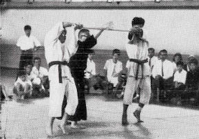 一方、昭和49年には、元最高裁判所長官であった石田和外師の提唱によって、町村金五氏(自治大臣)、大塚博紀師(和道流空手名人)、
